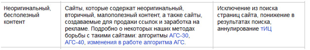 Так, за некачественный контент Яндекс применяет следующие санкции.